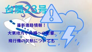台風 台風23号2025最新進路情報!大東地方や沖縄への影響,飛行機の欠航についても 台風23号(ナクリー)が日本の南海上を北上中!10日~11日にかけて大東地方や沖縄本島へ接近し、強風・高波・高潮に警戒が必要です。那覇空港や離島便の欠航・遅延、フェリー運休の可能性も。最新の進路予想や交通影響、家庭でできる停電・断水対策までわかりやすく紹介します。 2025.10.09 台風